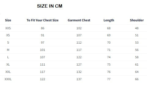 XXS, XS, S, M, L, XL, XXL, XXXL |