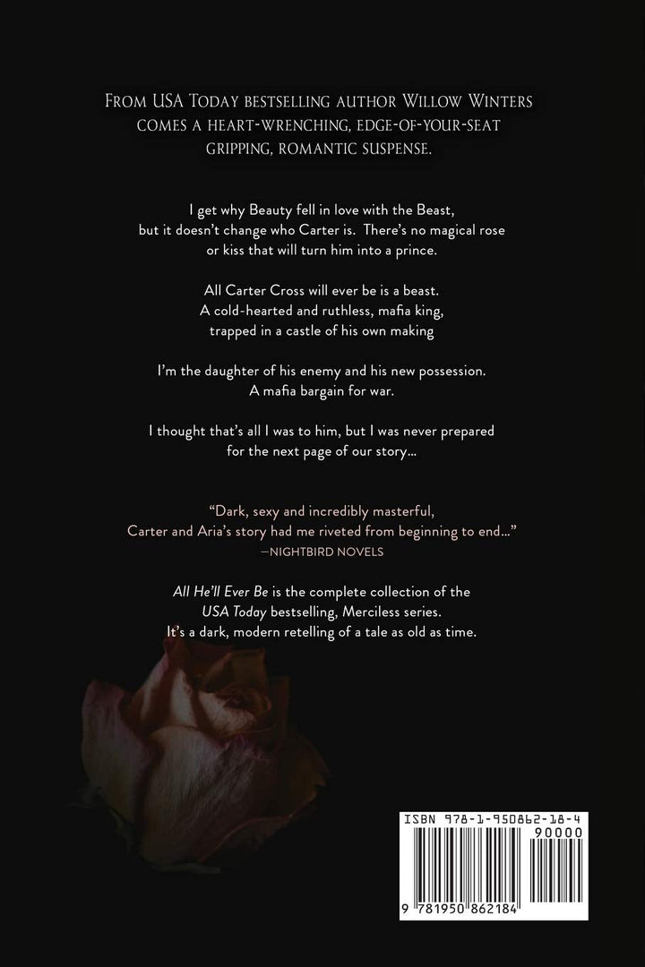 All He'll Ever Be is the complete collection of the USA Today bestselling, Merciless series. It's a dark, modern retelling of a tale as old as time.