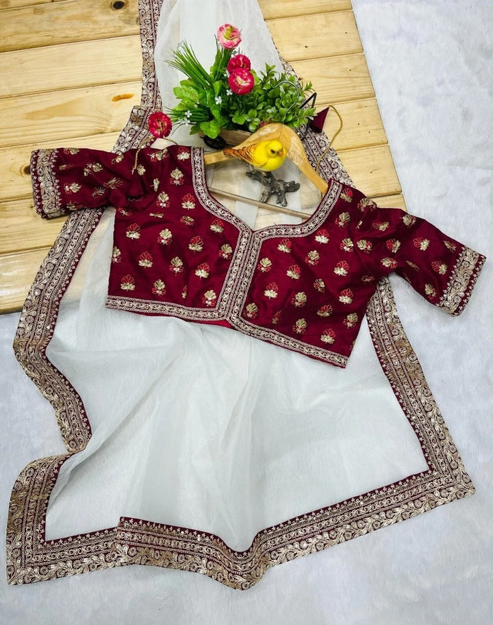 Saree Work :-Beautiful Jari Weave Crush 3mm & 5mm Sequence And Jari Dori Embroidered Lace Border