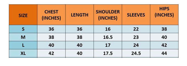 Size - S (Chest Size-36), M (Chest Size-38), L (Chest Size-40), XL (Chest Size-42)