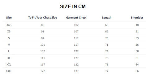 XXS, XS, S, M, L, XL, XXL, XXXL |