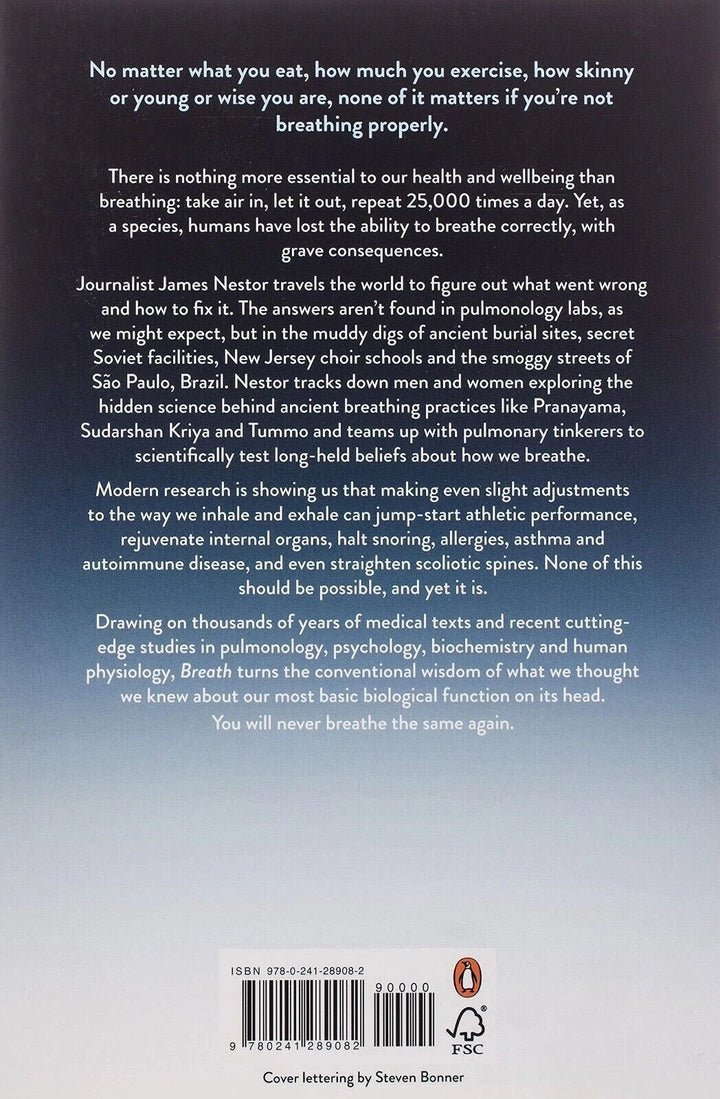 James Nestor meets cutting-edge scientists at Harvard and experiments on himself in labs at Stanford to see the impact of bad breathing. He revives the lost, and recently scientifically proven, wisdom of swim coaches, Indian mystics, stern-faced Russian cardiologists, Czechoslovakian Olympians and New Jersey choral conductors - the world's foremost 'pulmonauts' - to show how breathing in specific patterns can trigger our bodies to absorb more oxygen, and he explains the benefits for everyone that result, from staying healthy and warding off anxiety to improving focus and losing weight.