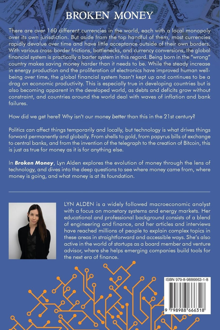 Broken Money explores the history of money through the lens of technology. Politics can affect things temporarily and locally, but technology is what drives things forward globally and permanently. The book's goal is for the reader to walk away with a deep understanding of money and monetary history, both in terms of theoretical foundations and in terms of practical implications.