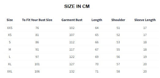 XXS, XS, S, M, L, XL, XXL |