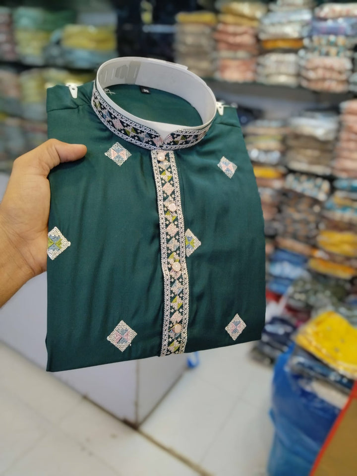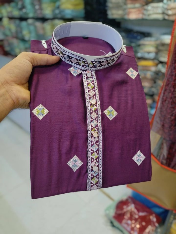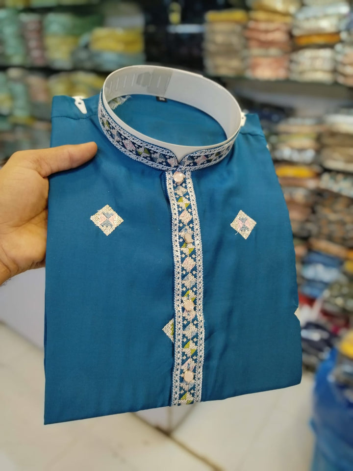 Men's Chandery With White Patti Pintex Kurat Pajama Set