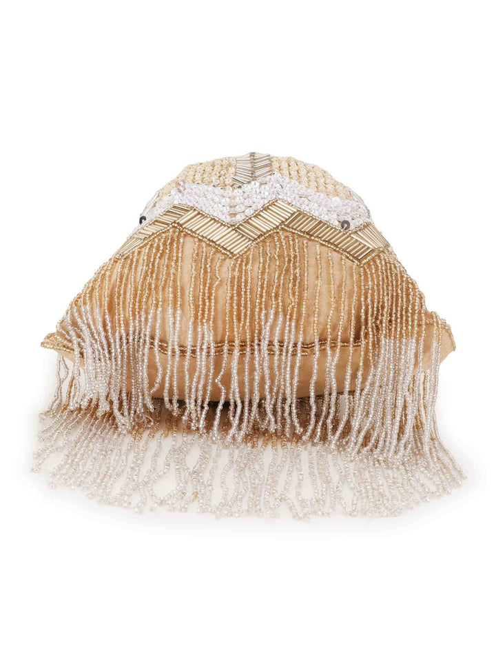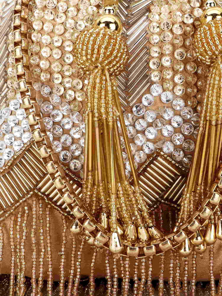 Step out donning this stunning Potli from latest Dangle Collection. This Potli comes with a spacious main compartment secured with a Drawstring closure. It features a Chevron Embellished Pattern on Faux Silk fabric and comes with a Detachable Wrist loop decorated with Tassels.