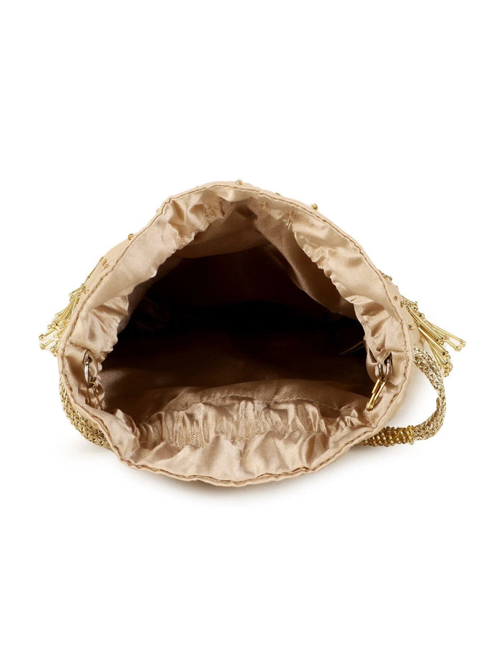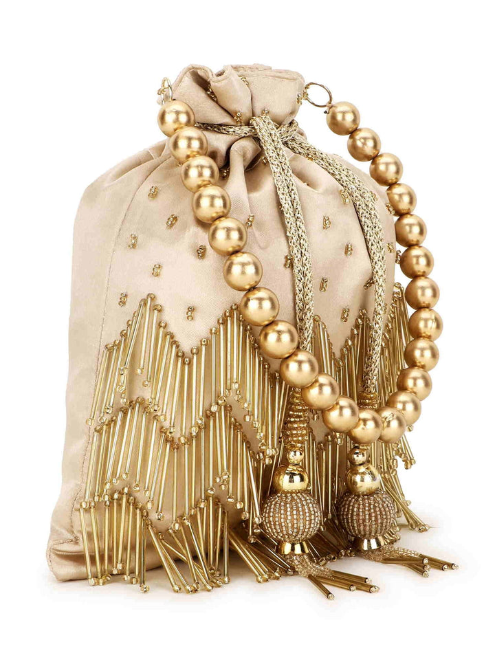 DESIGN: Embellished with Indian hand work, the soft fabric interior of the evening bag has enough room to keep your credit card, cash, and other small essentials like mobile phones, lipstick, highlighter, keys.
