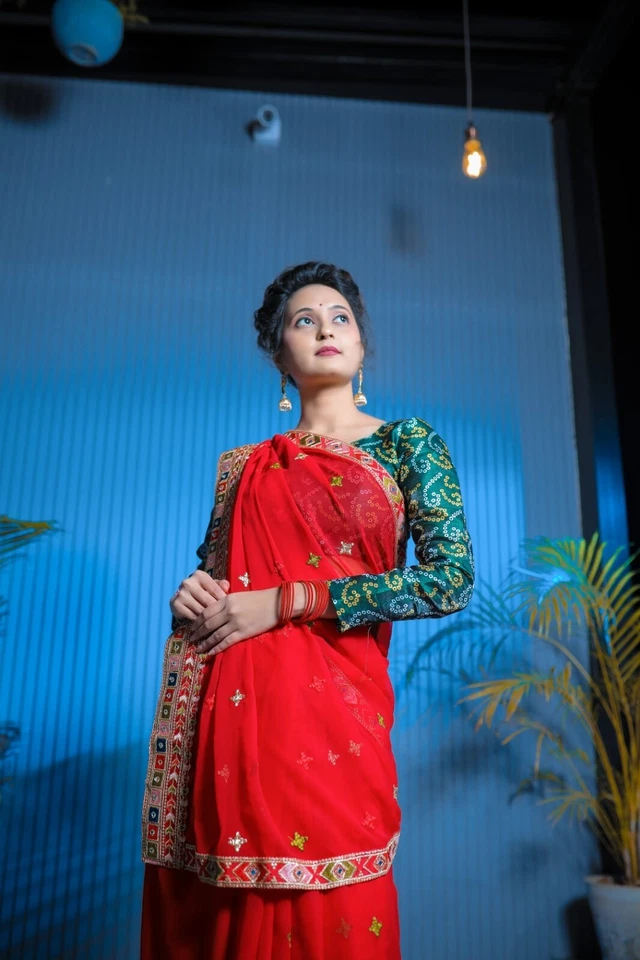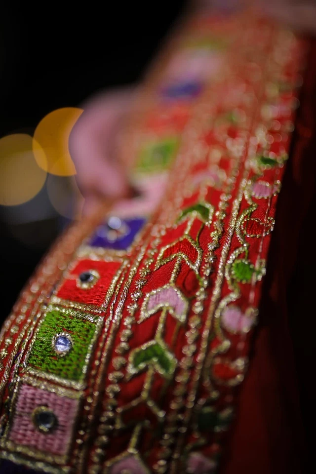 Saree Work :- Designer Malti Color Thread Embroidery Work With Real Mirror Work