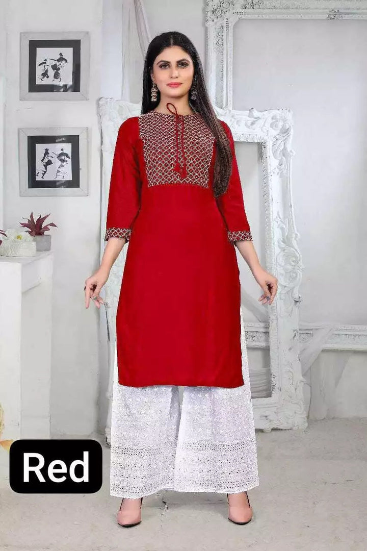Kurti Fabric :- Rayon With Embroidery Work And Rope Tassels At Neck