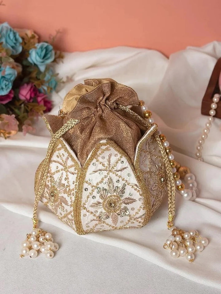DESIGN: Embellished with Indian hand work, the soft fabric interior of the evening bag has enough room to keep your credit card, cash, and other small essentials like mobile phones, lipstick, highlighter, keys.