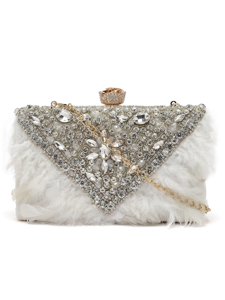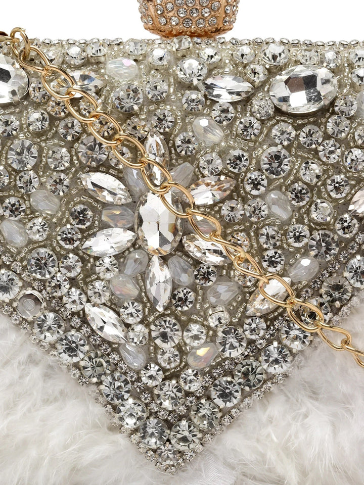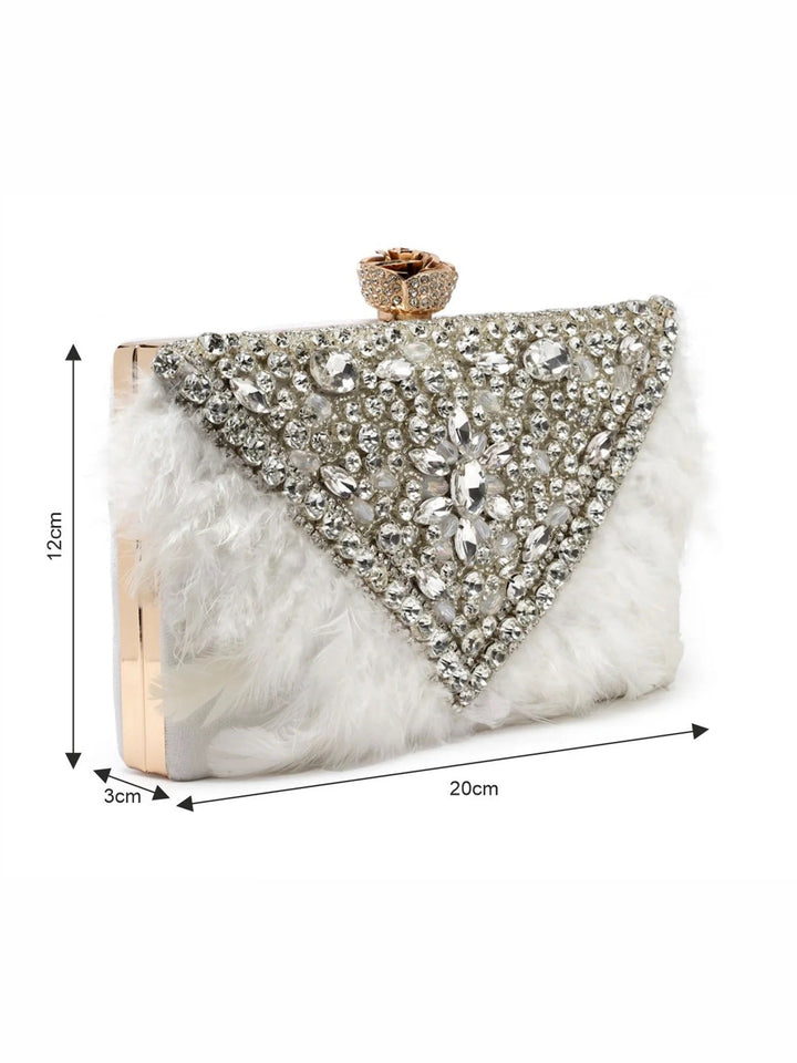 Clutch from Feather collection. This Box Clutch is crafted with the best Velvet fabric and features an Embellished pattern decorated with Stones. The sturdy and Detachable Shoulder strap will make sure you are never worried of it breaking apart. Secured with a Click closure, you will find this Clutch quite spacious to hold a phone, makeup, keys and other essentials.