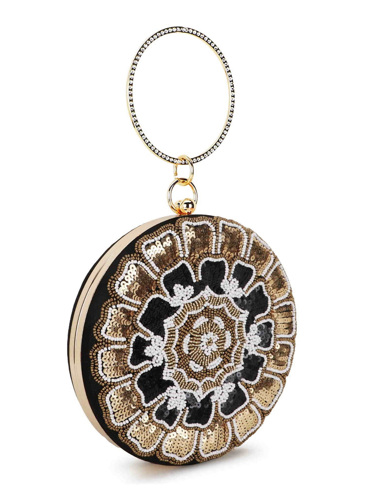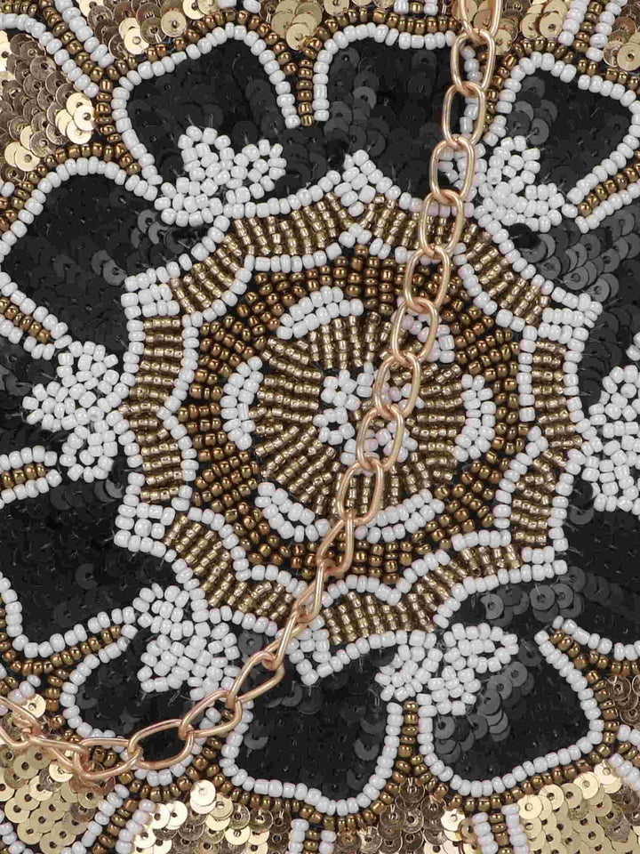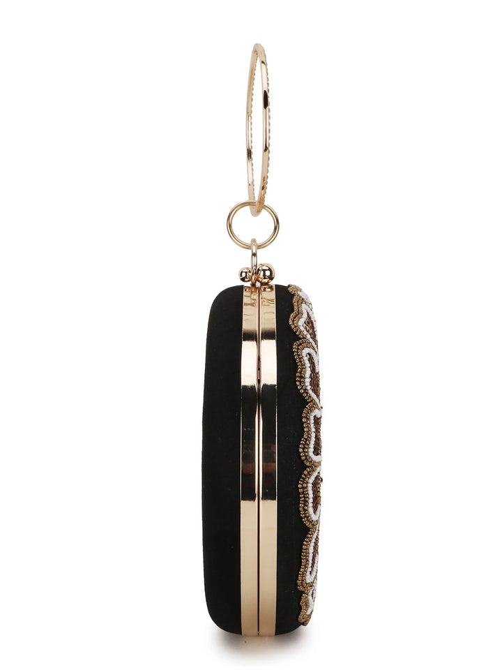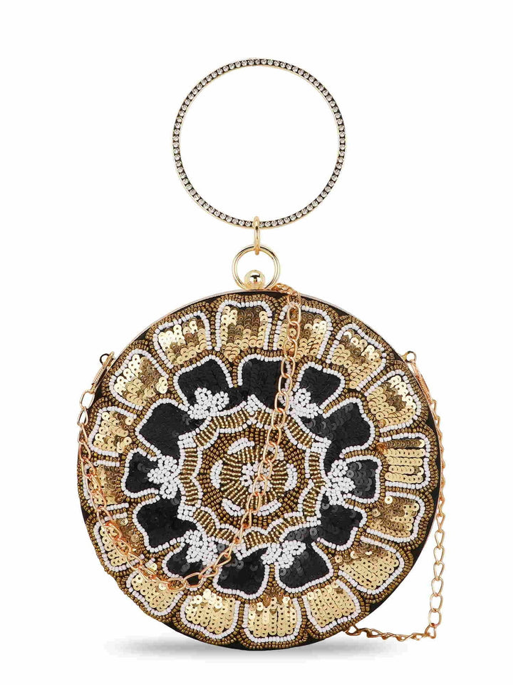 Step out donning this stunning Clutch from latest Gala Collection. This Box Clutch comes with a spacious main compartment secured with a Click closure. It features a Floral Emroidered Pattern on Satin fabric and comes with a Detachable Shoulder strap along with a wrist loop.