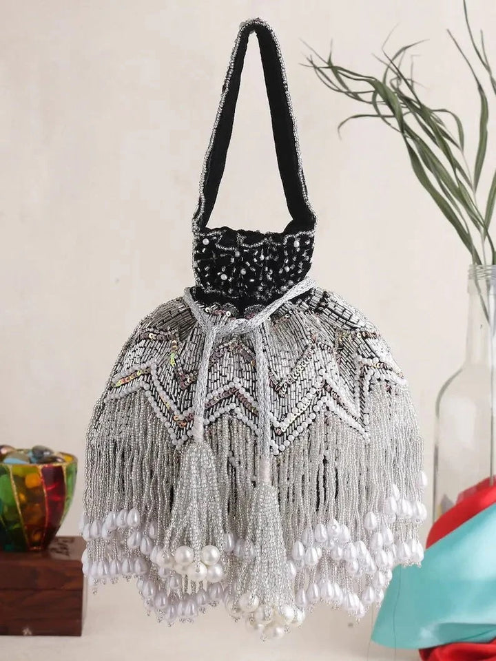 DESIGN: Embellished with Indian hand work, the soft fabric interior of the evening bag has enough room to keep your credit card, cash, and other small essentials like mobile phones, lipstick, highlighter, keys.