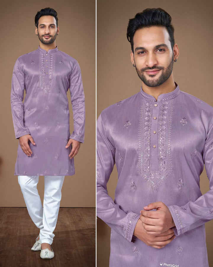 Heavy Super Silk With Embroidery Work Kurta Pajama Set
