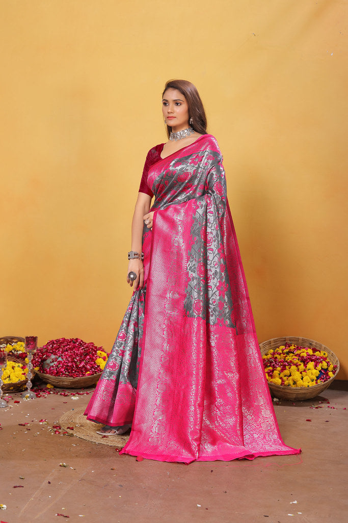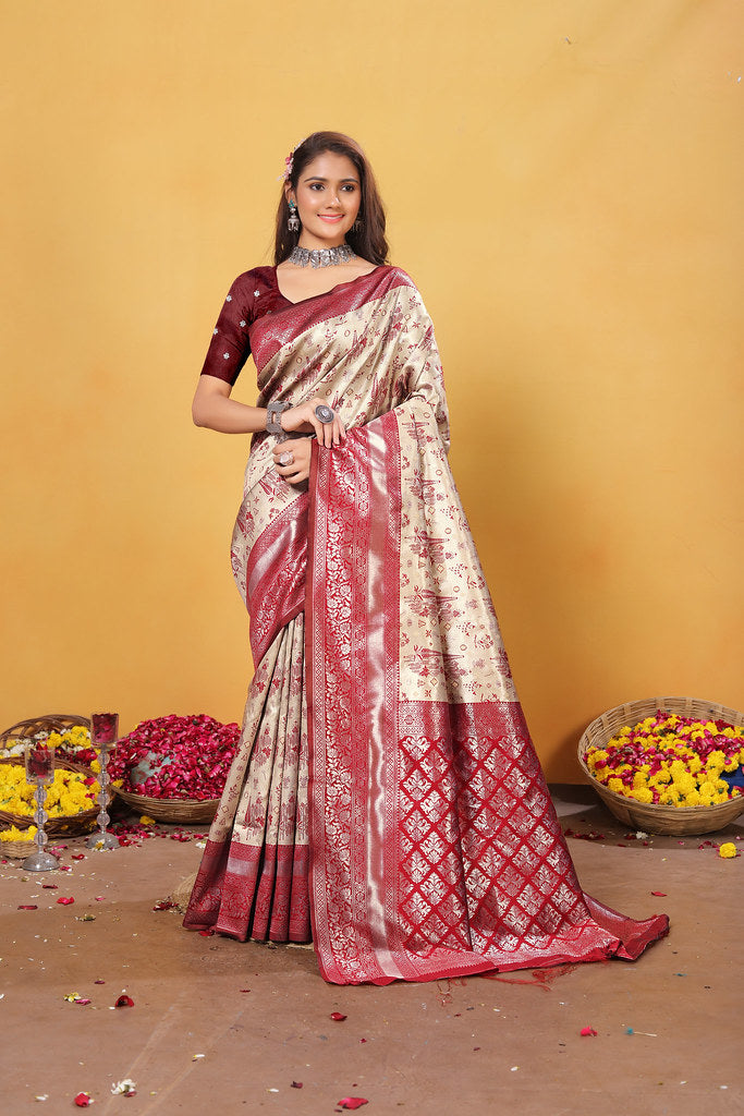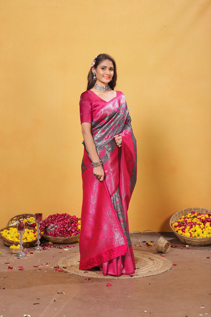 Kanjiwaram Silk Saree With Rich Pallu Designer Sari With Blouse