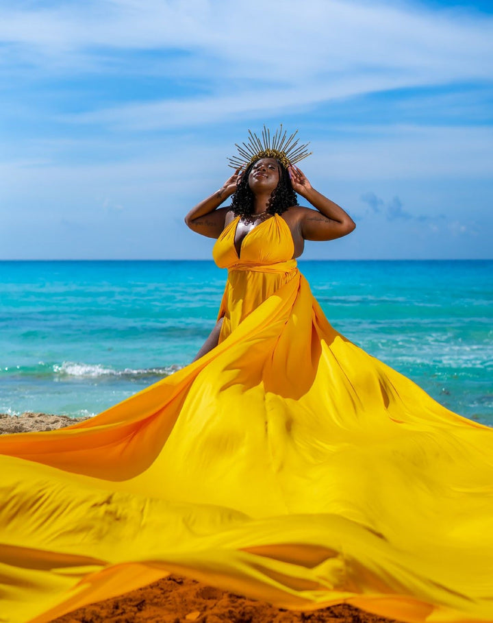 Opt for a cut that beautifully highlights your décolletage, or use its transformative abilities to have coverage in the front while drawing attention to the back. The luxurious yellow-gold color adds an air of regality, ensuring you stand out in any setting.