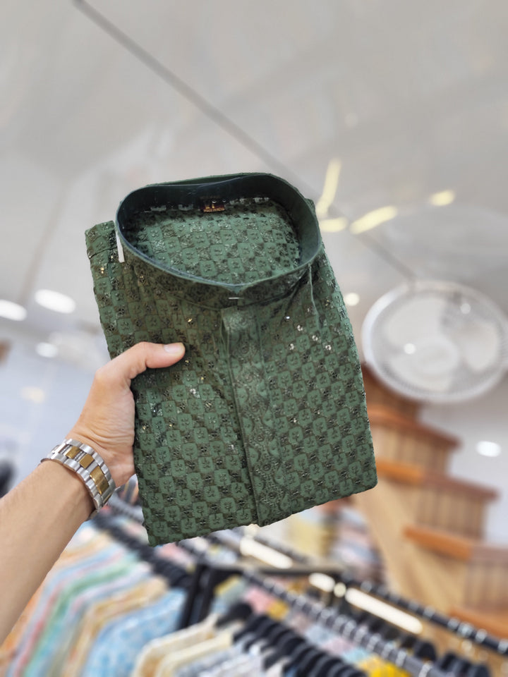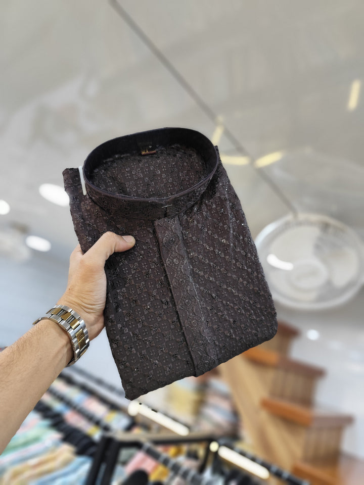 Men's Traditional Pure Viscose Rayon Chicken Embroidery Work Kurta Pajama Set