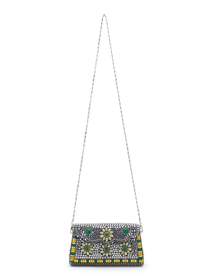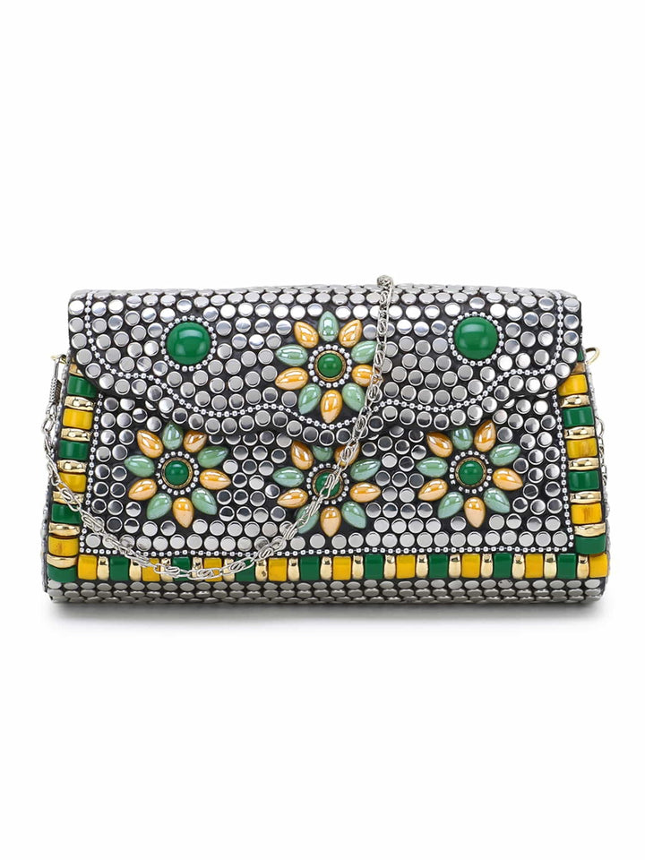 Mosaic Metal Clutch with Stone Work