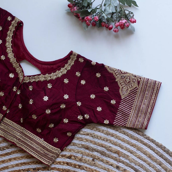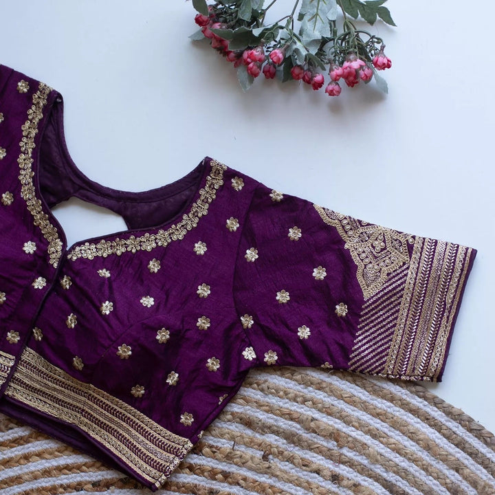 Blouse Fabric :- Caterpillar Silk With Golden Embroidery & Sequence Touch Up All Over Blouse