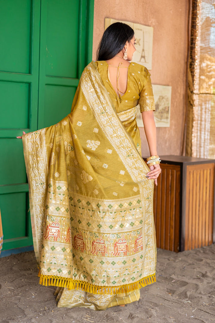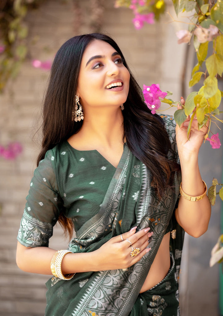 Premium Linen Cotton Traditional Wedding Function Wear Saree With Blouse 11-VD