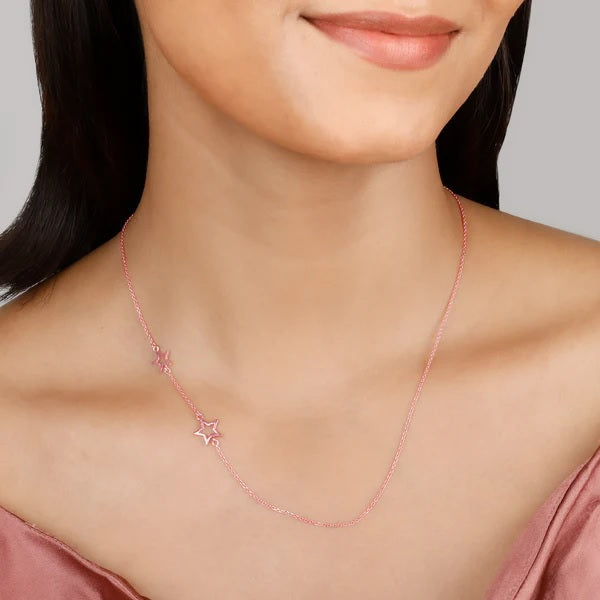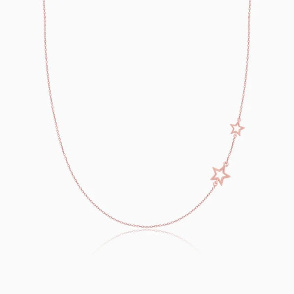 The rose gold necklace has two-star designs on the side of the chain making it an interesting piece.