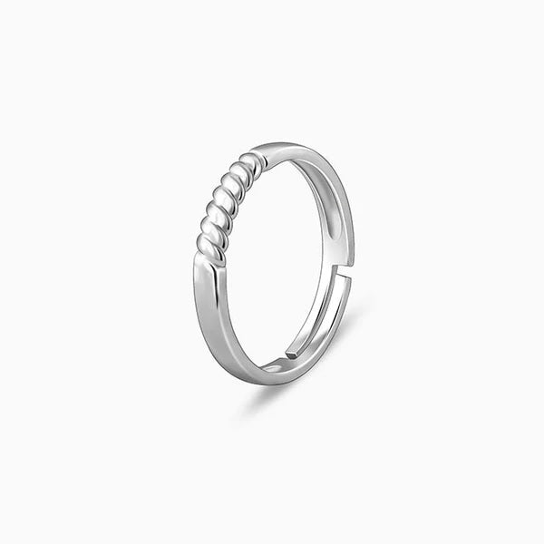 This silver adjustable ring has a design of a curvy engraved lines in the centre.