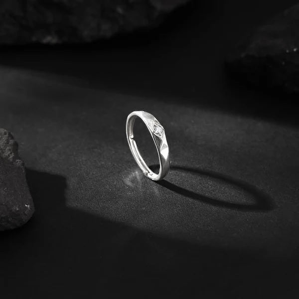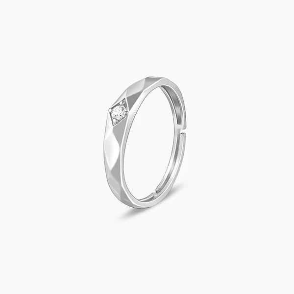 The Inspiration: This ring captures the contemporary minimal trend with an edge. Gift this to your stylish dear one. The Design: This silver ring has a rhombus patterned band with a zircon set in the centre of the ring. 925 Silver Perfect for sensitive skin Adjustable size to ensure no fitting issues Ring Diameter: 1.97 cm + Adjustable Content: Ring Net Qty - 1 unit Styling Tip: Style this with a yellow Tee-shirt and blue jeans.