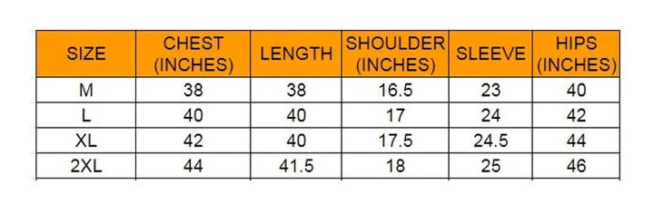 Size :- M (Chest Size-38), L (Chest Size-40), XL (Chest Size-42), 2XL (Chest Size-44)