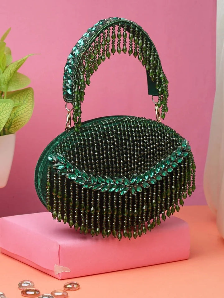 DESIGN: Embellished with Indian hand work, the soft fabric interior of the evening bag has enough room to keep your credit card, cash, and other small essentials like mobile phones, lipstick, highlighter, keys.