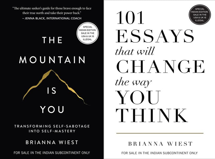 - This combo product is bundled in India but the publishing origin of this title may vary.Publication date of this bundle is the creation date of this bundle; the actual publication date of child items may vary.101 Essays That Will Change The Way You Think, the global bestseller and social media phenomenon, is a collection of author Brianna Wiest's most beloved pieces of writing. Her meditations include why you should pursue purpose over passion, embrace negative thinking, see the wisdom in daily routine, and become aware of the cognitive biases that are creating the way you see your life. Some of these pieces have never been seen; others have been read by millions of people around the world. Regardless, each will leave you thinking: this idea changed my life.,This is a book about self-sabotage. Why we do it, when we do it, and how to stop doing it—for good. Coexisting but conflicting needs create self-sabotaging behaviors. This is why we resist efforts to change, often until they feel completely futile. But by extracting crucial insight from our most damaging habits, building emotional intelligence by better understanding our brains and bodies, releasing past experiences at a cellular level, and learning to act as our highest potential future selves, we can step out of our own way and into our potential. For centuries, the mountain has been used as a metaphor for the big challenges we face, especially ones that seem impossible to overcome. To scale our mountains, we actually have to do the deep internal work of excavating trauma, building resilience, and adjusting how we show up for the climb. In the end, it is not the mountain we master, but ourselves.