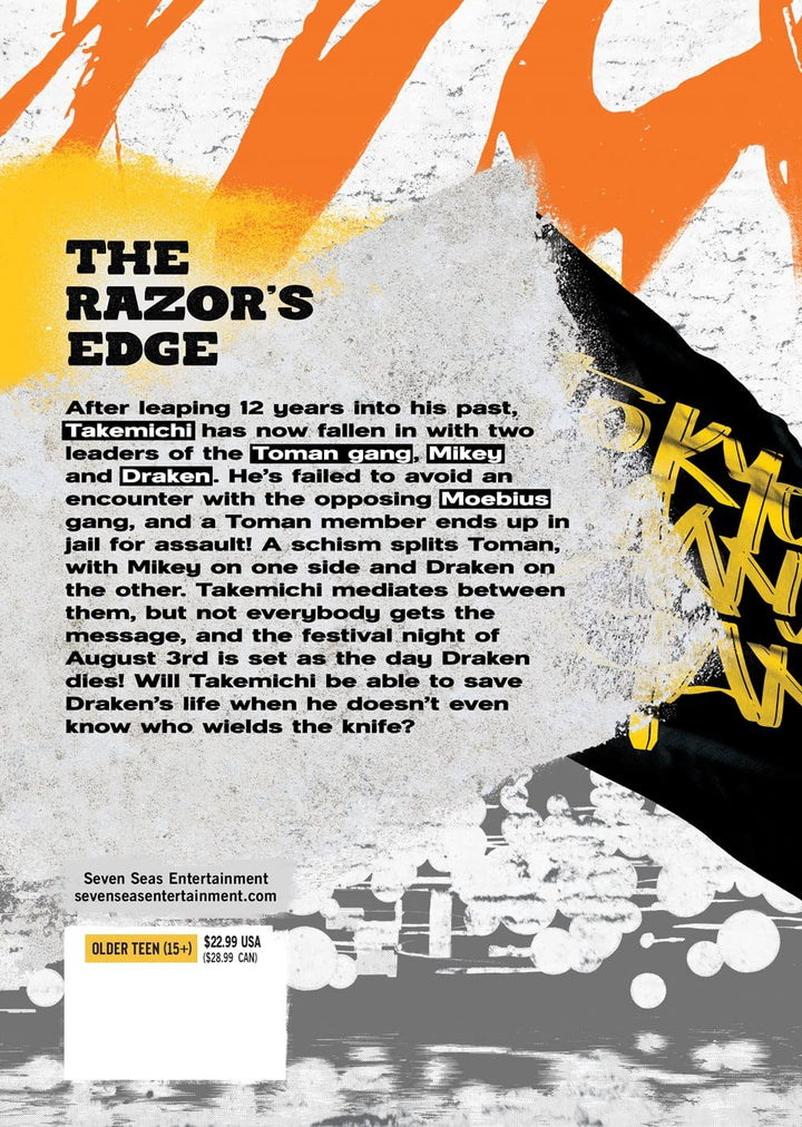 After leaping 12 years into his past, Takemichi has now fallen in with two leaders of the Toman gang, Mikey and Draken. He’s failed to avoid an encounter with the opposing Moebius gang, and a Toman member ends up in jail for assault! A schism splits Toman, with Mikey on one side and Draken on the other. Takemichi mediates between them, but not everybody gets the message, and the festival night of August 3rd is set as the day Draken dies! Will Takemichi be able to save Draken’s life when he doesn’t even know who wields the knife?