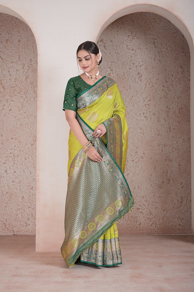 Traditional Soft Silk Saree Weaving Heavy Banarasi Pallu Sari With Blouse