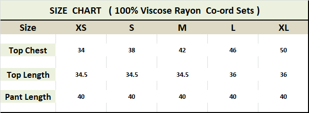 Co-ord Set Fabric :- Viscose Rayon ( Top + Pant )