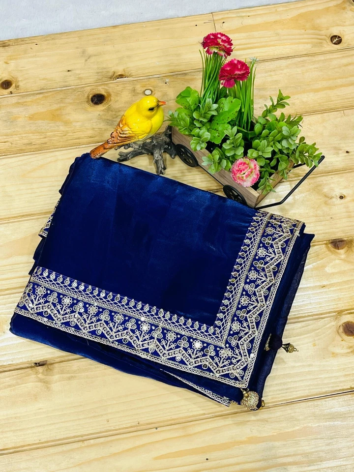 Saree Work :-Designer Zari Dori Embroidery Work With 3MM & 5 MM Sequins Embroidery Work Lace Border