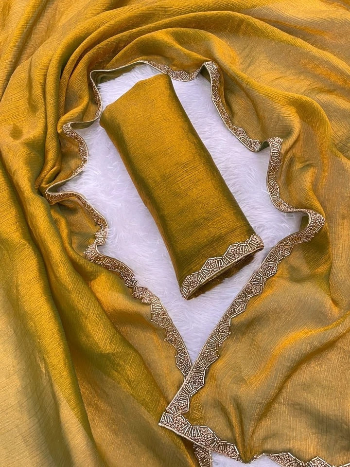 Saree Fabric :- Frandy Crush Fabric Katdana Moti Lace Border